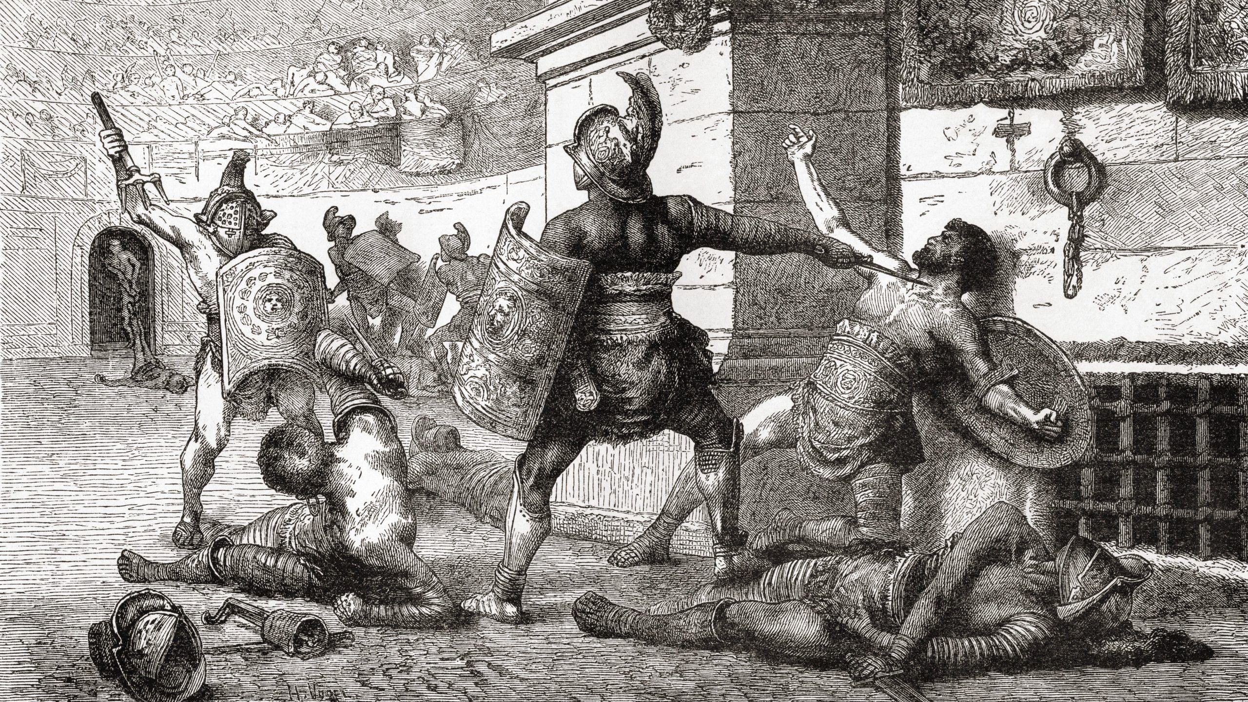 Luptele timpurii cu gladiatori au inceput in secolul al III-lea i.e.n. ca jertfe rituale de sange pentru spiritele nobililor recent plecati. Acest lucru s-a schimbat in jurul anului 27 i.Hr. cand Augustus a preluat puterea la Roma, spune Michael J. Carter, profesor de clasici la Universitatea Brock din Ontario: „El detaseaza lupta de gladiatori de contextul ei pur funerar si o transforma intr-o parte obisnuita a ciclului de divertisment din Roma. .” Schimbarea a dat nastere unora dintre cei mai faimosi gladiatori de astazi: Spartacus, Spiculus, Marcus Attilius si altii.