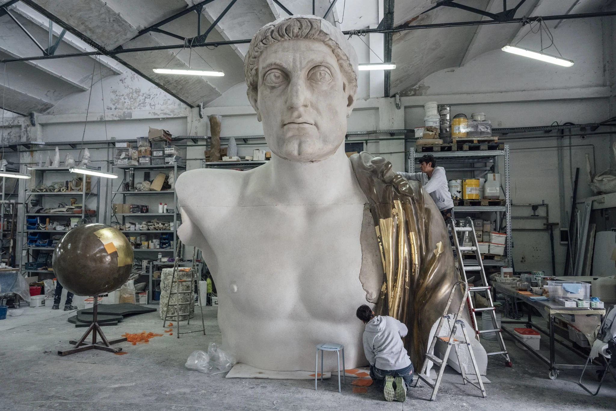 Din aceasta perspectiva, nu putem decat sa salutam cu placere initiativa Muzeelor Capitoline de a plasa o reproducere contemporana a acrolitului lui Constantin , ale carei piese originale sunt in prezent aranjate ieratic in interiorul curtii Palazzo dei Conservatori la acelasi muzeu. Statuia era imensa si se afla chiar in spatele Templului Pacii sau Forumul lui Vespasian, in absida asa-numitei Bazilici a lui Maxentius, care domina Forumul Roman. Bazilica, construita initial de Maxentius, a fost apoi rededicata lui Constantin in urma bataliei de la Podul Milvian din 312. In mod potrivit, imparatul favorit al crestinilor a vrut sa se portretizeze in statuia colosala a cladirii. Dimensiunile erau impresionante: peste unsprezece metri inaltime in total. Piciorul masura doi metri, iar capul chiar doi metri si saizeci de centimetri. Pentru expozitia curatoriata de Salvatore Settis, Anna Anguissola si Denise La Monica la Fundatia Prada in 2022, Recycling Beauty , statuia a fost amplasata in interiorul spatiului Cisterna: dimensiunea gigantica a imparatului a fost de asa natura incat, asemenea unei versiuni moderne a lui Zeus. din Olympia de catre Fidias, era inevitabil sa ne gandim ca statuia ar fi smuls acoperisul cladirii daca ar fi decis sa se ridice. Reconstructia, realizata cu contributia Fondazione Prada si a Muzeelor Capitoline sub supravegherea riguroasa a lui Claudio Parisi Presicce, este opera companiei Factum Foundation for Digital Technology in Preservation , o fundatie non-profit creata de artistul britanic Adam Lowe. .